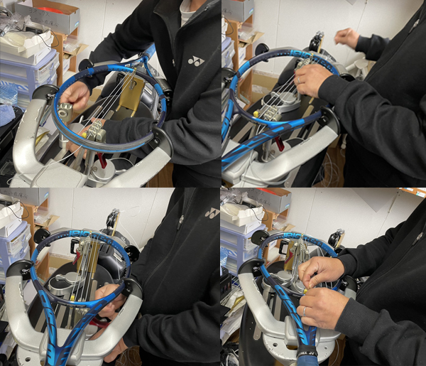 ラケットのストリング張りもお任せください! 機械は日本製の高性能コンピュータ制御で、オリンピックやメジャートーナメントでも、オフィシャルマシンとして使用されたもので、張り上げのバラつきがありません。個々のプレイスタイルに合わせた張り上げは、ちょっぴり自慢です!